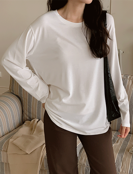 쫀득찰랑 普通款 圆领 长袖 T恤衫 84202