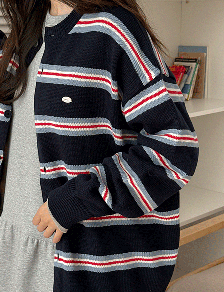 [남녀공용] 시밀러 宽松 条纹 针织衫 开衫 84050