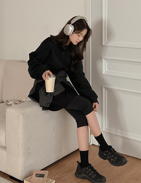 릿썬 松紧带 핀턱 七分裤 카프리 바이커 短裤 84117