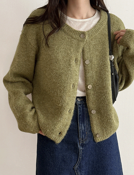 눈이가요 圆领 宽松 羊毛 开衫 84460