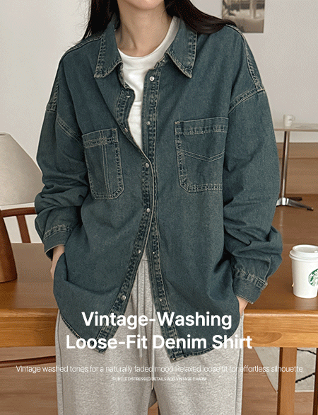 复古/仿旧 洗碗机 宽松 牛仔色 衬衫 84413
