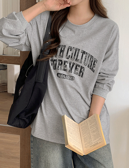 쉬앤 宽松 레터링 长袖 T恤衫 84315