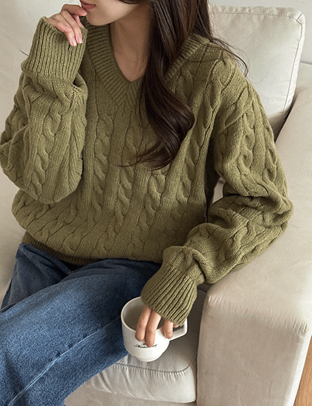 베로스 麻花型 颜色 V字领 针织衫 84617
