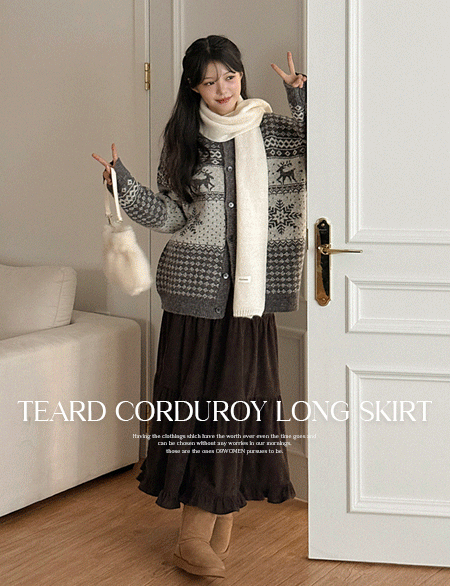 초코링 松紧带 层褶裙 코듀로이 长款 裙子 84668
