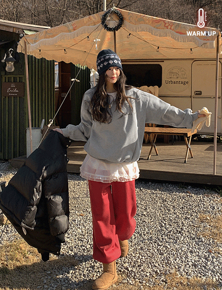 블루닛 刺绣 半自动化 拉绒 宽松 套头卫衣 85066