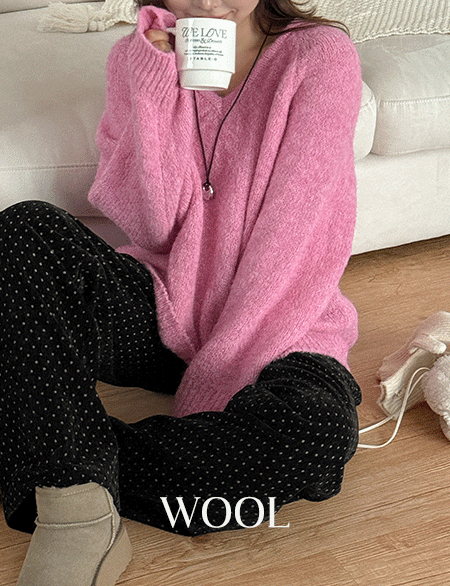 마일든 宽松 앙고라 V领 羊毛 针织衫 85264