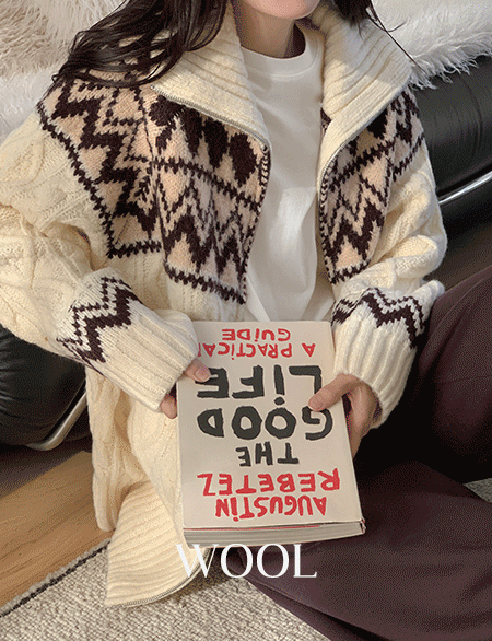 홀리넬 北欧 图案 羊毛 针织衫 拉链卫衣 85428