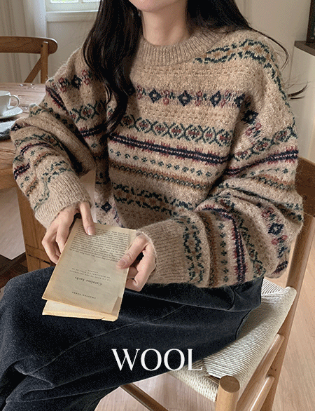 페어 花 아일 圆领 宽松 羊毛 针织衫 85288