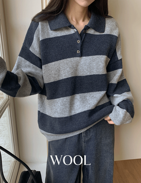 유니온 配色 条纹 羊毛 领 针织衫 85286