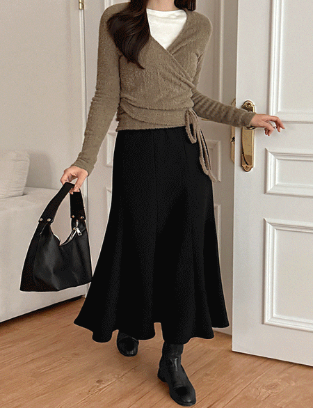 멜트닝 松紧带 절개 머메이드 拉绒 长款 裙子 85431