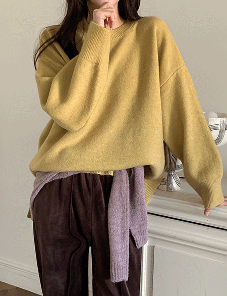 모가트 颜色 宽松 圆领 슬릿 针织衫 85424