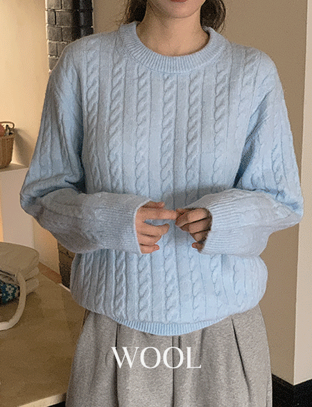 [엠디픽] 虹色 케이블 羊毛 圆领 针织衫 85567