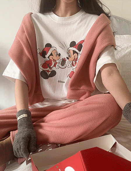 [디즈니정품] 홀리데이 미키 拉绒 半袖 T恤衫 85553