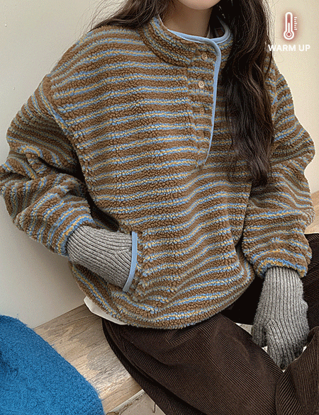 프리첼 配色 条纹 金羊毛 套头卫衣 85749