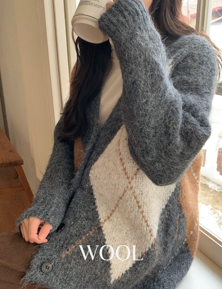 먼로 아가일 宽松 羊毛 针织衫 开衫 85738