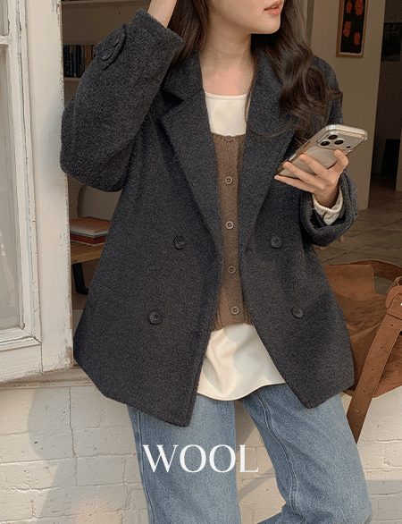 큐디스 보카시 双排扣 短上衣 羊毛 夹克 85836