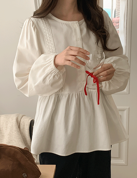 제루디 褶皱 蕾丝 女衬衫 85824
