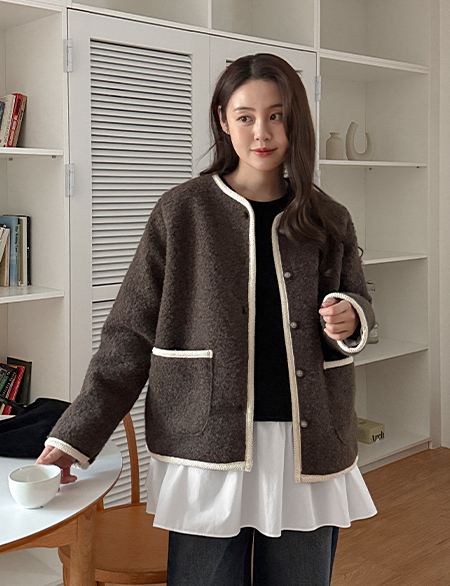 쿠쿠슈 配色 纯色 부클 夹克 85936