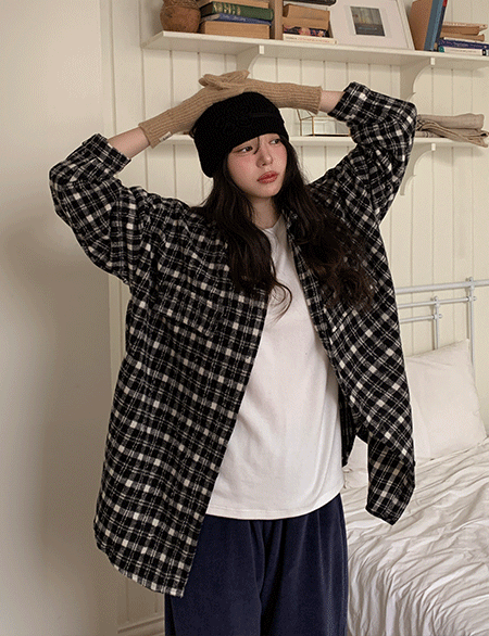 도아 겉기모 宽松 格子 衬衫 夹克 85873