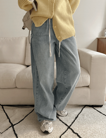 사이드스냅 线条 松紧带 宽 牛仔色 短裤 85983