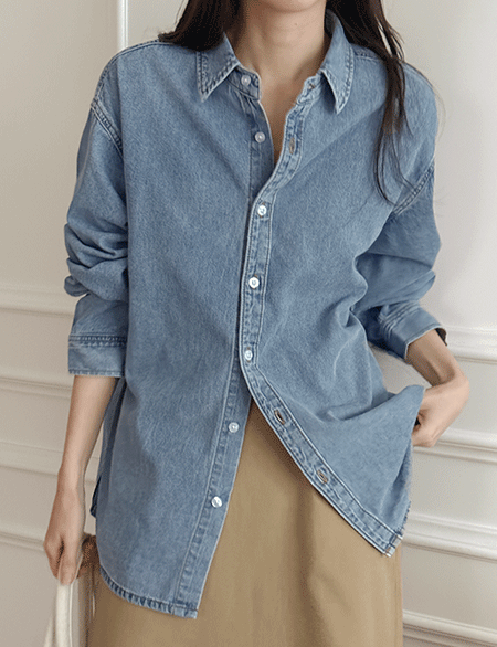 [엠디픽] 클래틴 宽松 牛仔色 衬衫 86042