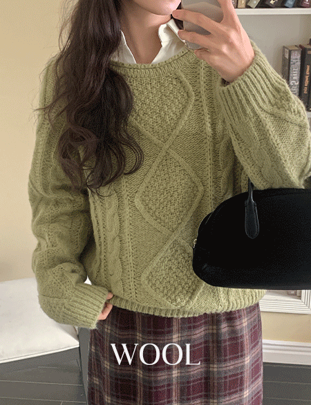 마이니 宽松 케이블 羊毛 针织衫 85543