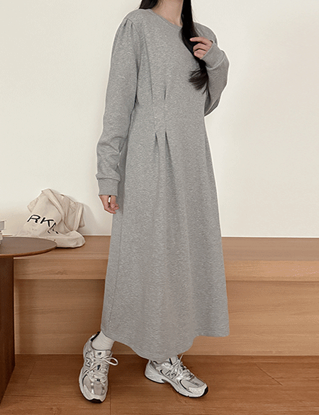 티프로 핀턱 关键点 波浪群/喇叭裙 长款 连衣裙 86032