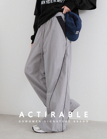 글레일 松紧带 커브 절개 配色 宽 短裤 86351