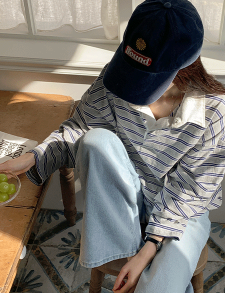 슈플레 스퀘어넥 竖纹 세미크롭 T恤衫 86403