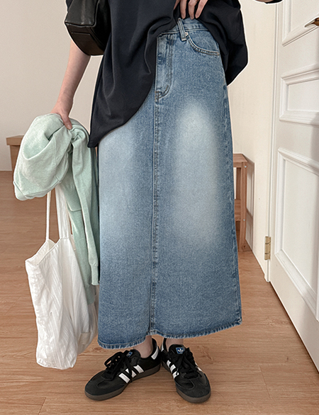 루밍 뒷밴딩 牛仔色 长款 H字型 裙子 86215