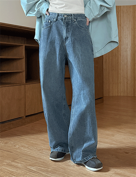 에이싱 宽 棉布 牛仔色 短裤 86337