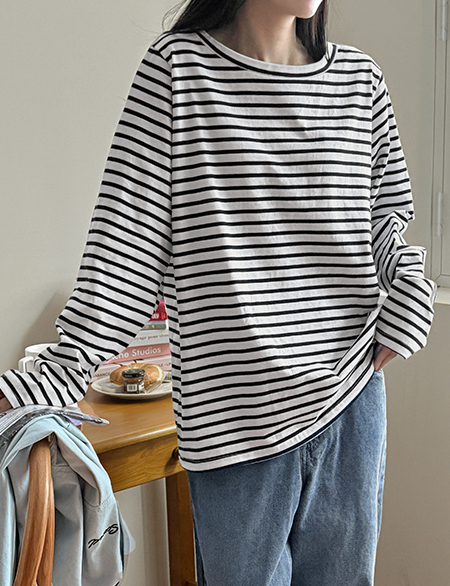 오픈 条纹 长袖 T恤衫 86336