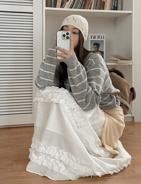 허스티 松紧带 褶皱 长款 裙子 86480