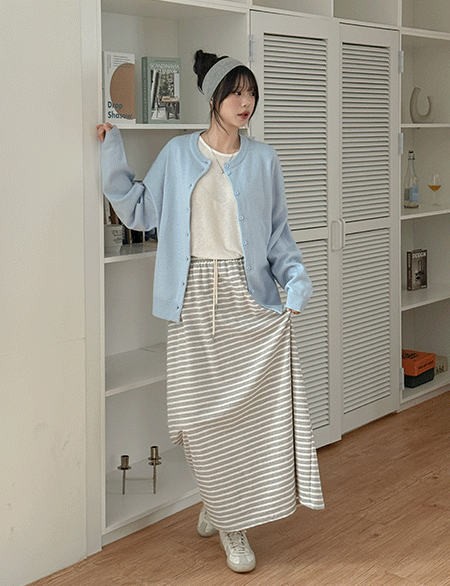 렌므드 松紧带 条纹 长款 裙子 86379