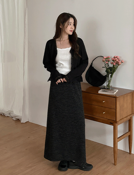 덴쿠 松紧带 条纹 长款 裙子 86583