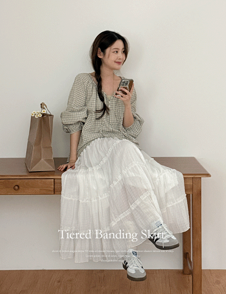 라슈카 层褶裙 松紧带 长款 裙子 86563