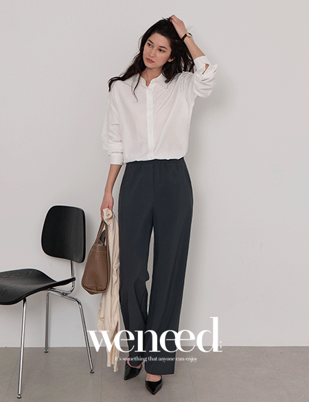 [特价30%][40까지] 링클프리 항상 깔끔하게 세미와이드 松紧带 宽松裤 86566