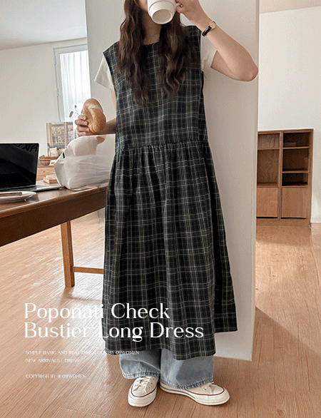 포포나티 格子 뷔스티에 长款 连衣裙 86733