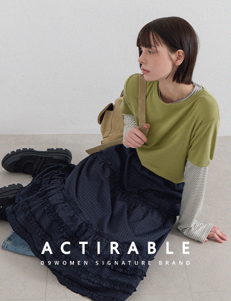 치크 格子 褶皱 层褶裙 미디 松紧带 裙子 86469