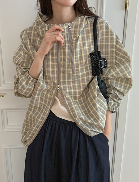 아덴 지퍼 关键点 格子 卫衣 双重 윈드 夹克 86800