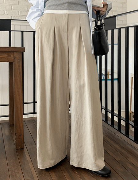 이프린 뒷밴딩 차르르 핀턱 宽松裤 86841