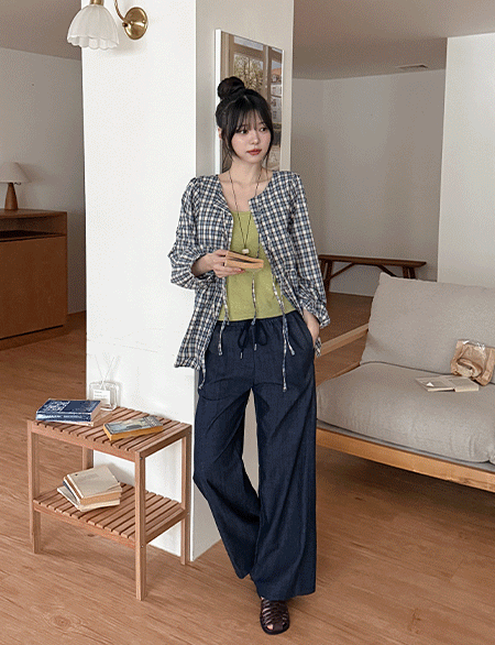 리투아 사선절개 松紧带 宽 短裤 86908