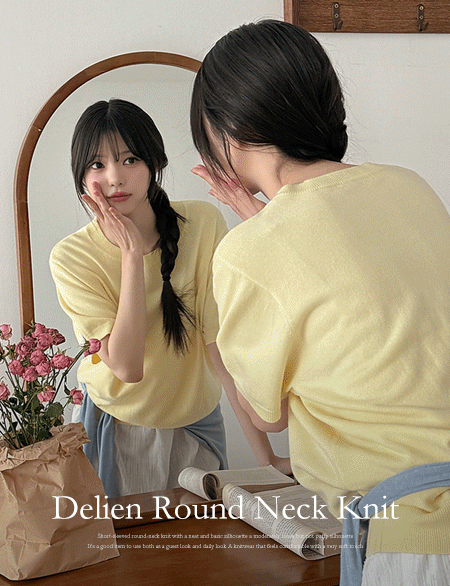 델리앙 宽松 半袖 圆领 针织衫 86899