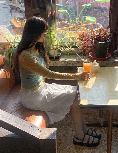 [엠디픽] 핀터언니 松紧带 褶皱 미디 裙子 87042