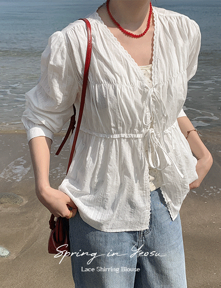 로이티 蕾丝 셔링 女衬衫 86984