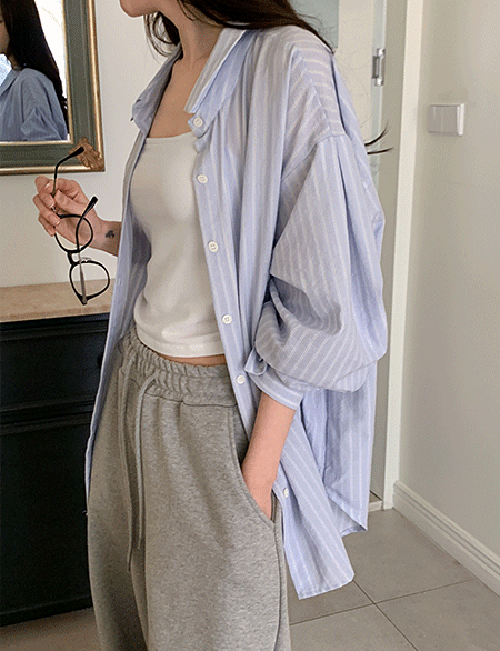 뒷모습까지 예쁜 条纹 宽松 백버튼 衬衫 86847