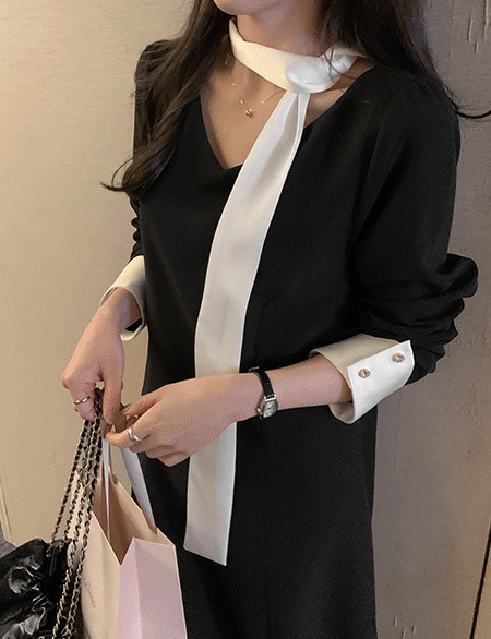 에르드 泡泡袖 타이 长款 连衣裙 87198