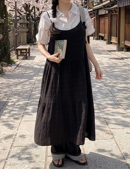 류이샤 格子 뷔스티에 长款 连衣裙 86991