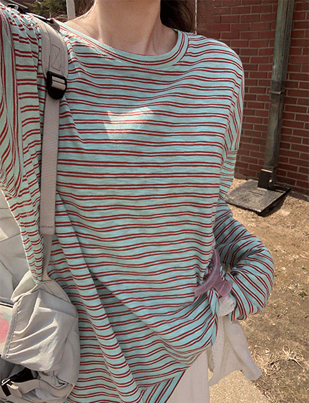[살안타템] 스프링 條紋 宽松 T恤衫 87293