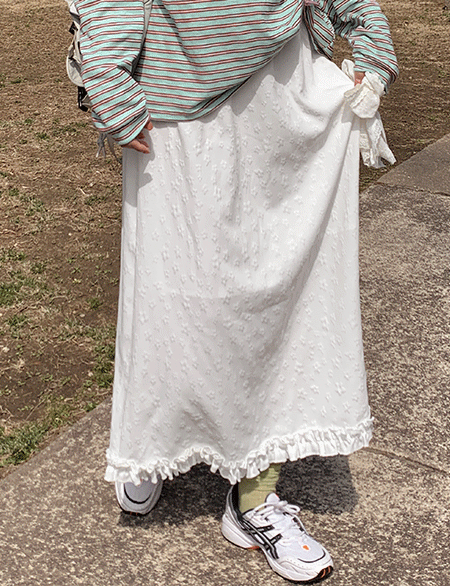 페이린 松紧带 花 褶皱 长款 裙子 87286